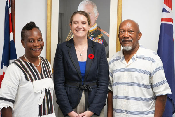 Tony is a sought-after speaker familiar to audiences across radio, television, and online media both in the UK and Internationally. Pictured above Ms Harriet Cross, Governor of Montserrat accompanied by Dr. Clarice Barnes, Independent Scholar – Courtesy Call At The Start Of The Tour.